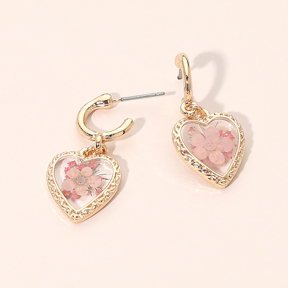 Details • Size : 0.6" X 1.3" • Fish Hook Back • Charming heart-shaped drop earrings designed to showcase a delicate, botanical-inspired centerpiece within a sleek, modern silhouette. Lightweight and easy to style, they add a romantic accent to everyday outfits while transitioning effortlessly into polished looks for evenings or special occasions. • Lead and Nickel Compliant