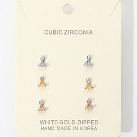 Felt Back Triple Flower Beaded Dropdown Earrings
