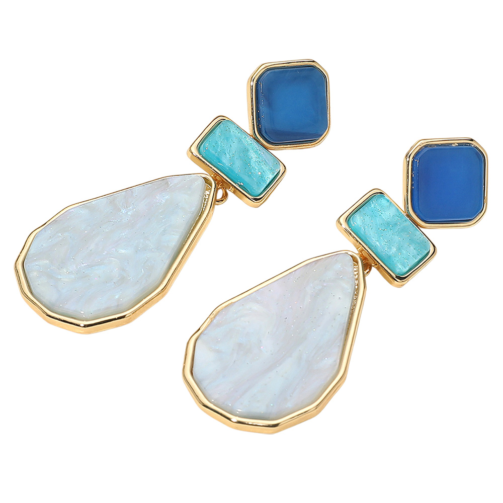 Details • Size : 1.1" X 2.9" • Post Back • Bold geometric drop earrings featuring layered shapes with glossy accents. These statement earrings combine modern artistry with timeless elegance, perfect for parties, evening wear, or elevating everyday outfits. Lightweight and stylish, they add a contemporary touch to any look. • Lead and Nickel Compliant
