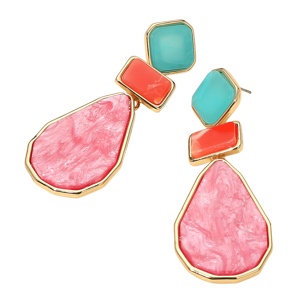 Details • Size : 1.1" X 2.9" • Post Back • Bold geometric drop earrings featuring layered shapes with glossy accents. These statement earrings combine modern artistry with timeless elegance, perfect for parties, evening wear, or elevating everyday outfits. Lightweight and stylish, they add a contemporary touch to any look. • Lead and Nickel Compliant