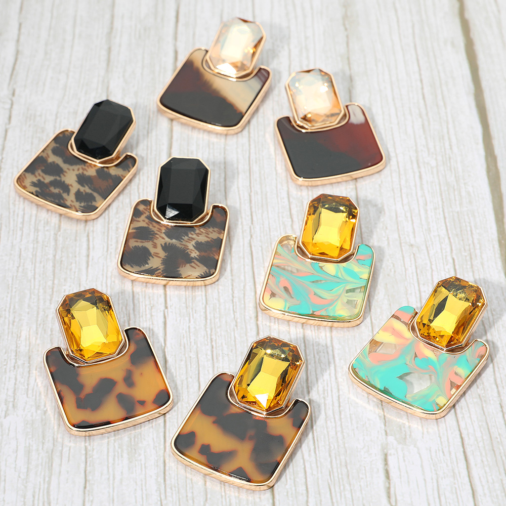 Geometric Stone Accent Printed Resin Plate Drop Earrings