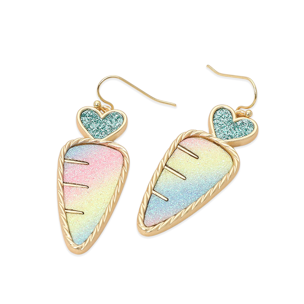 Details • Size : 0.75" X 2.1" • Fish Hook Back • These playful carrot drop earrings feature a charming heart accent and a softly textured finish with sculpted detailing. Designed to stand out in seasonal and themed collections, they offer a fun yet polished look that works well for gift assortments, holiday edits, and boutique accessory displays. • Lead and Nickel Compliant