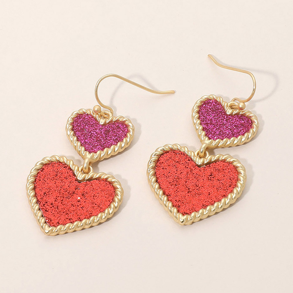 Glitter Double Heart Link Drop Dangle Earrings Glitter Double Heart Link Drop Dangle Earrings Glitter Double Heart Link Drop Dangle Earrings