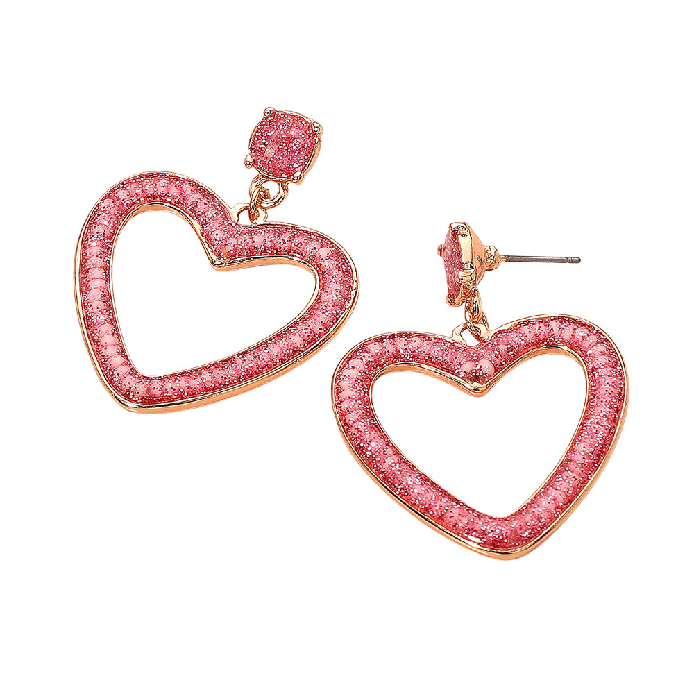 Details • Size : 1.25" X 1.7" • Post Back • Lightweight open-heart dangle earrings featuring a glittery accent finish and a bold drop-heart design. A stylish statement accessory ideal for gifting or adding a touch of sparkle to everyday and special-occasion looks. • Lead and Nickel Compliant