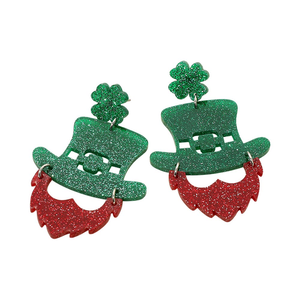 Details • Size : 1.5" X 2.6" • Post Back • Festive leprechaun drop earrings featuring a playful hat and beard design with sparkling accents and charming movement. A fun statement accessory for St. Patrick’s Day celebrations, themed parties, parades, and seasonal outfits, adding personality and cheerful flair to any look. • Lead and Nickel Compliant