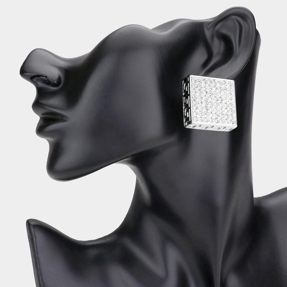 Greek Pattern Detailed Rhinestone Embellished Square Earrings Greek Pattern Detailed Rhinestone Embellished Square Earrings