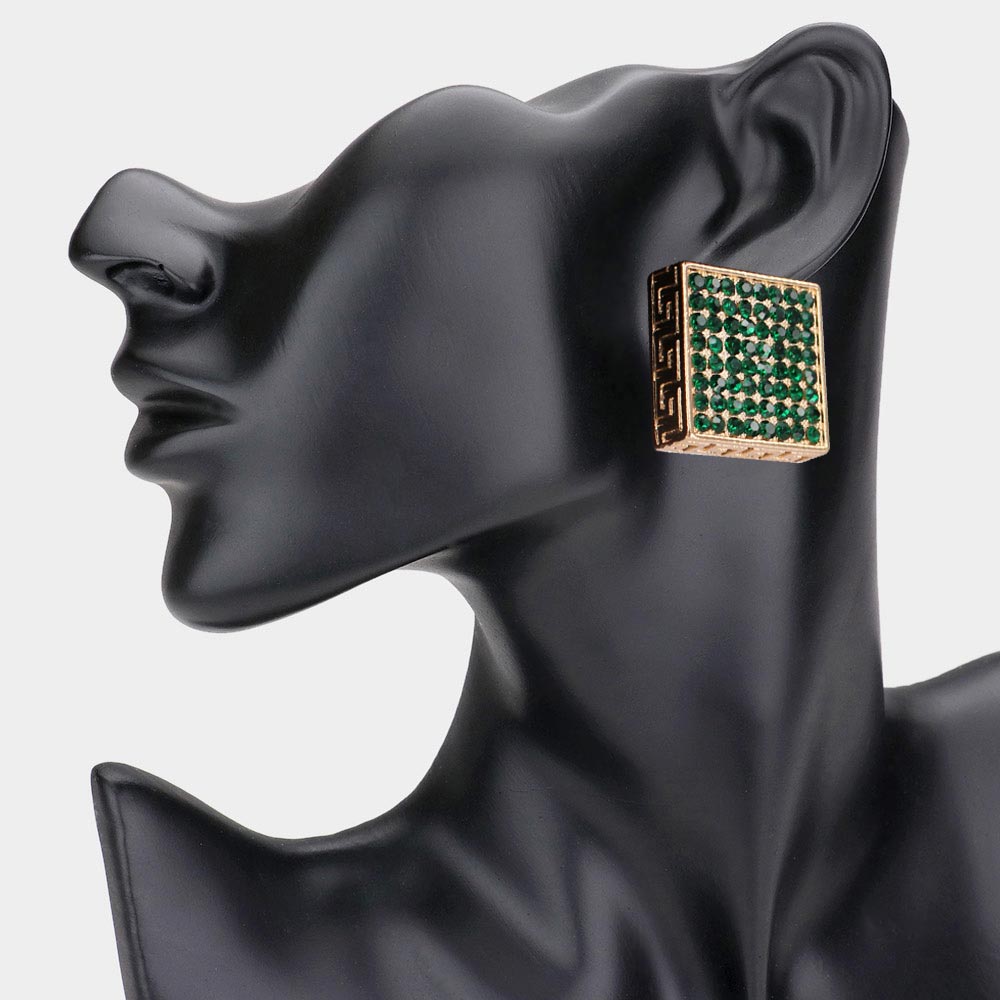 Greek Pattern Detailed Rhinestone Embellished Square Earrings