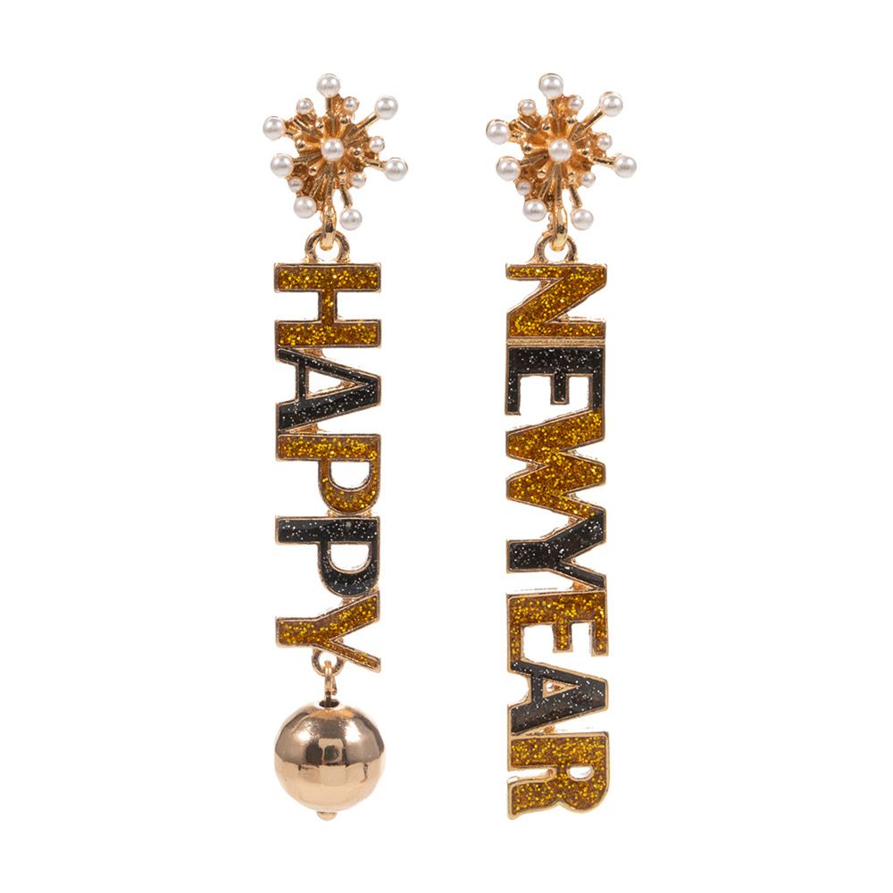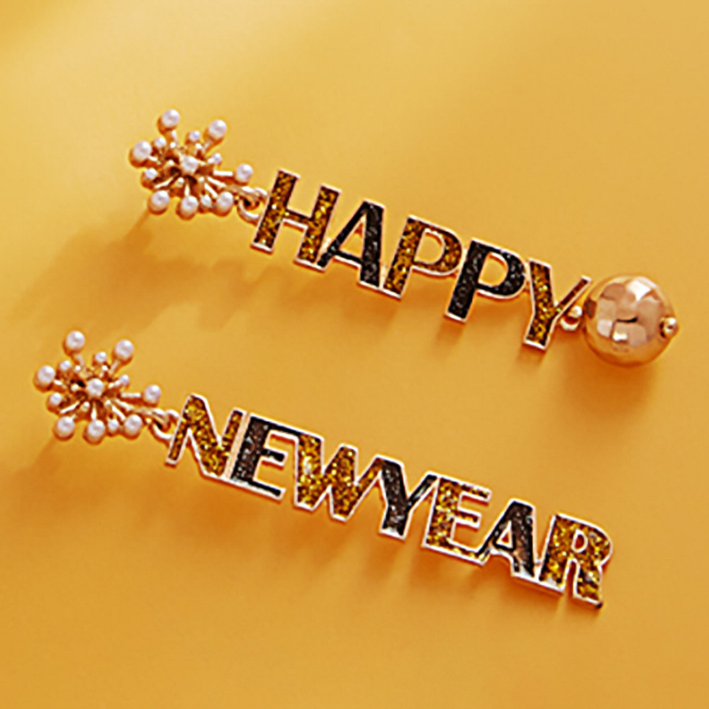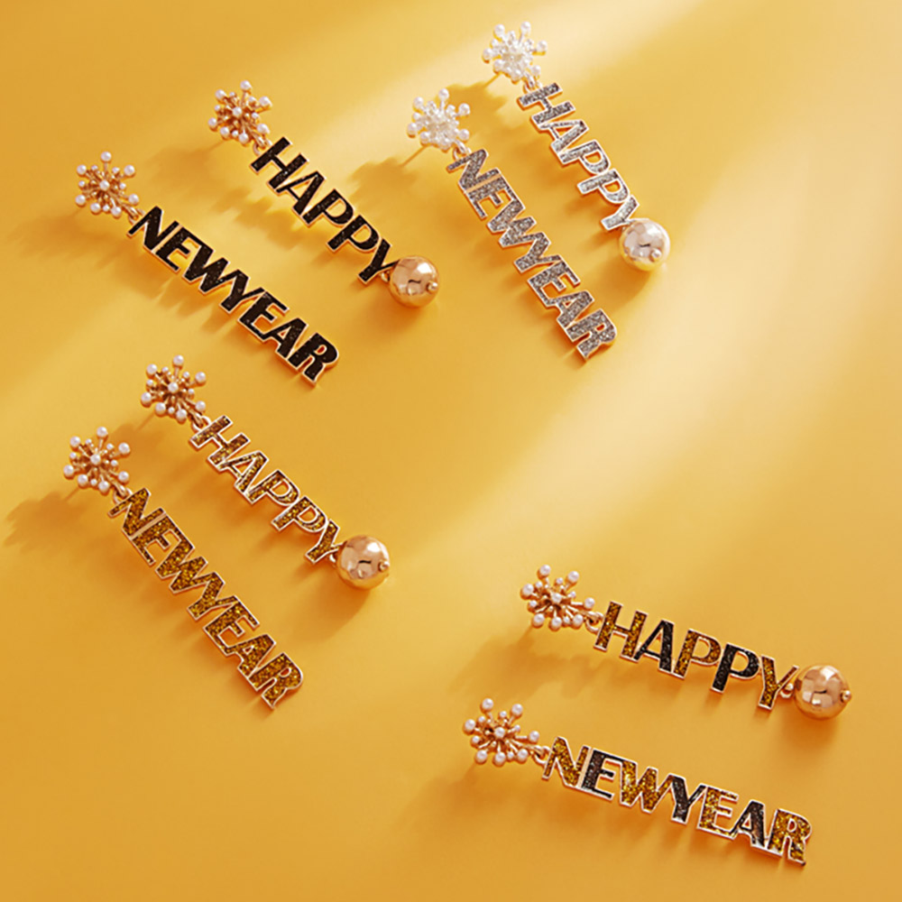 HAPPY NEWYEAR Message Dangle Earrings HAPPY NEWYEAR Message Dangle Earrings HAPPY NEWYEAR Message Dangle Earrings
