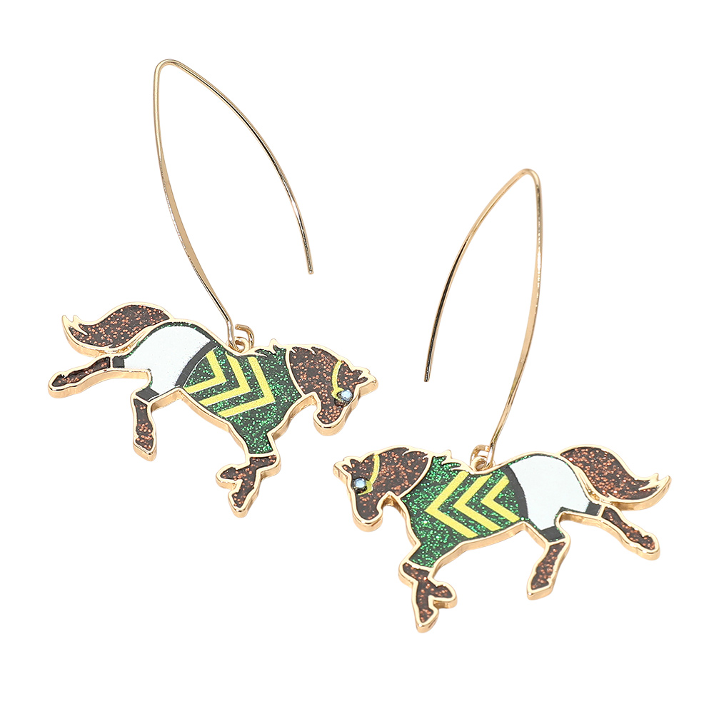 • Whimsical horse hook drop earrings featuring a playful silhouette design that brings movement and personality to any jewelry display. Lightweight and easy to wear, these novelty earrings are perfect for gift shops, western-inspired assortments, seasonal promotions, and fun fashion collections. A charming statement piece that adds character and visual interest to everyday styling and themed displays.