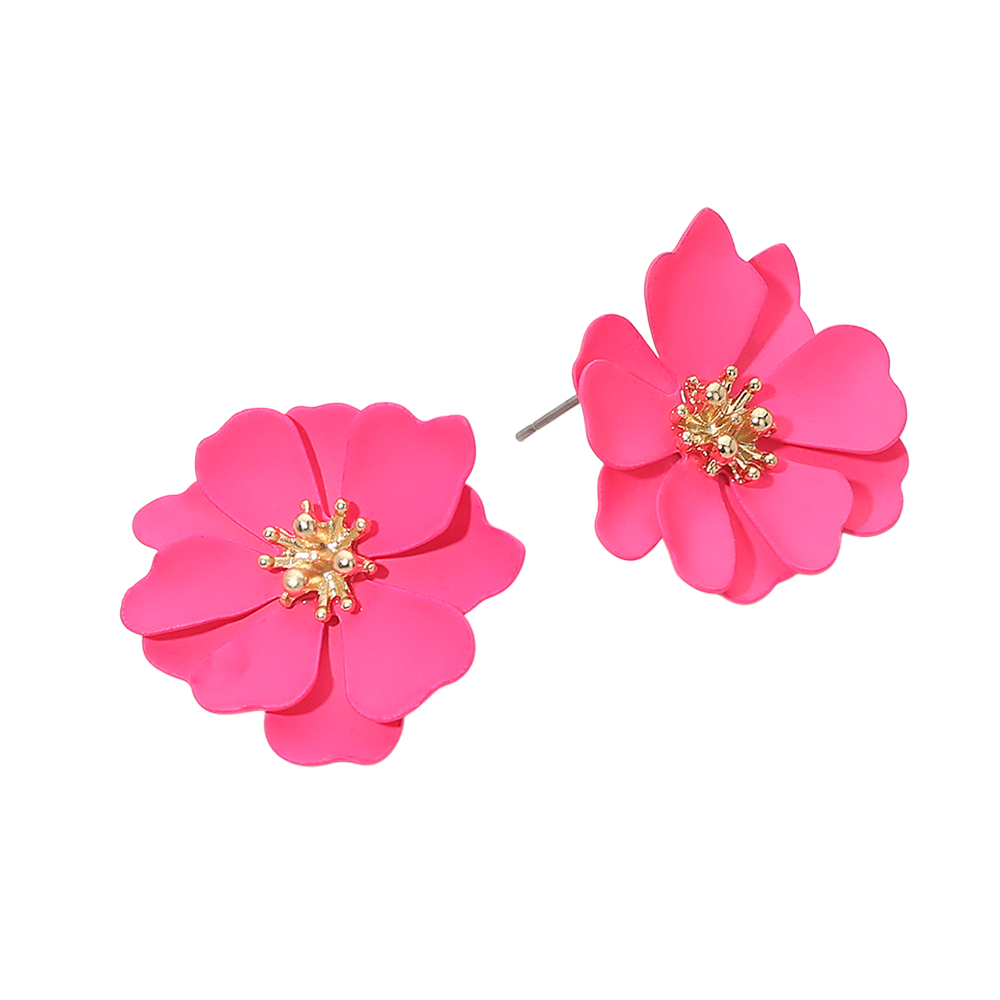 Details • Size : 1.2" X 1.1" • Post Back • Charming layered petal flower stud earrings designed with sculpted petal details and a dimensional floral silhouette. A versatile accessory for everyday styling, seasonal collections, boutiques, and gift-ready assortments, offering feminine appeal with a lightweight, easy-to-wear design. • Lead and Nickel Compliant