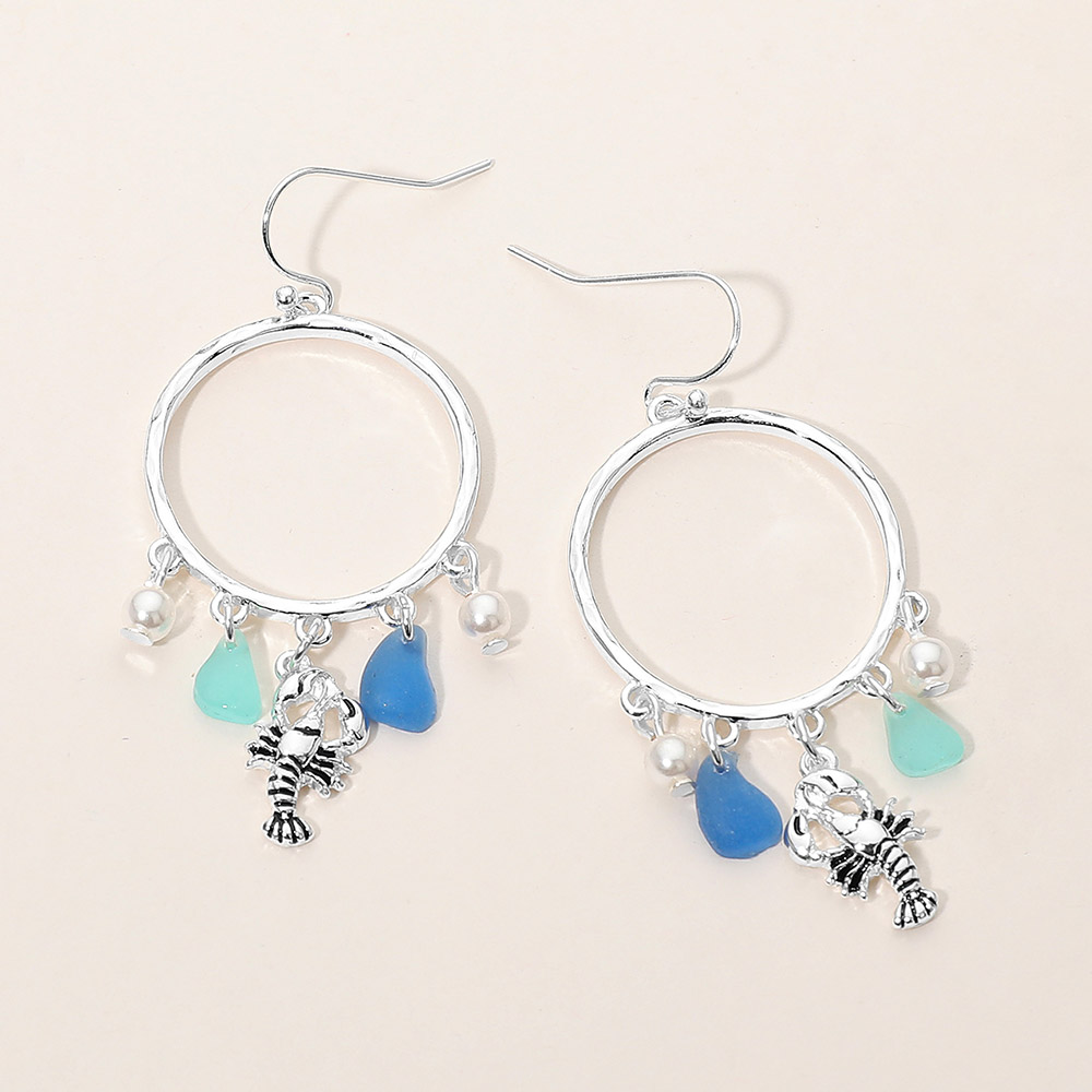 Lobster Sea Glass Charm Drop Open Ring Dangle Earrings Lobster Sea Glass Charm Drop Open Ring Dangle Earrings