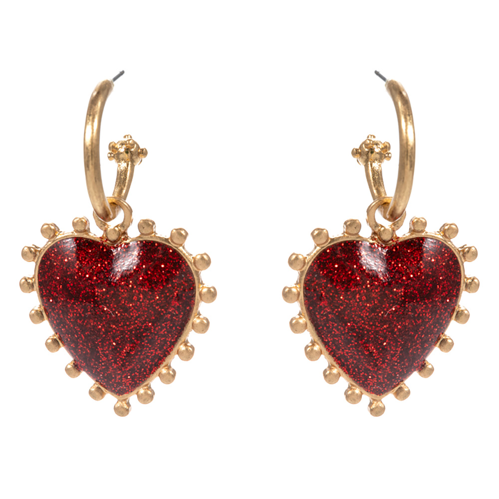 • Chic heart hoop earrings featuring a glitter accent and beaded edge for a playful yet elegant look. Perfect for adding sparkle to everyday outfits or special occasions, these earrings bring charm and shine, making them a stylish choice for festive or romantic wear.