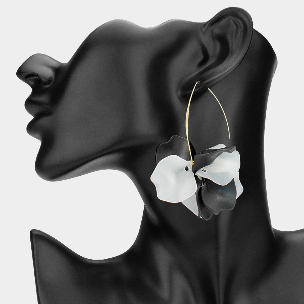 Details • Size : 1.5" X 2.25" • Long Hook Back • Elevate your look with this striking floral hoop earring featuring a large layered petal design. Lightweight yet impactful, it's perfect for making a chic, artistic statement at any event or outing. • Lead and Nickel Compliant