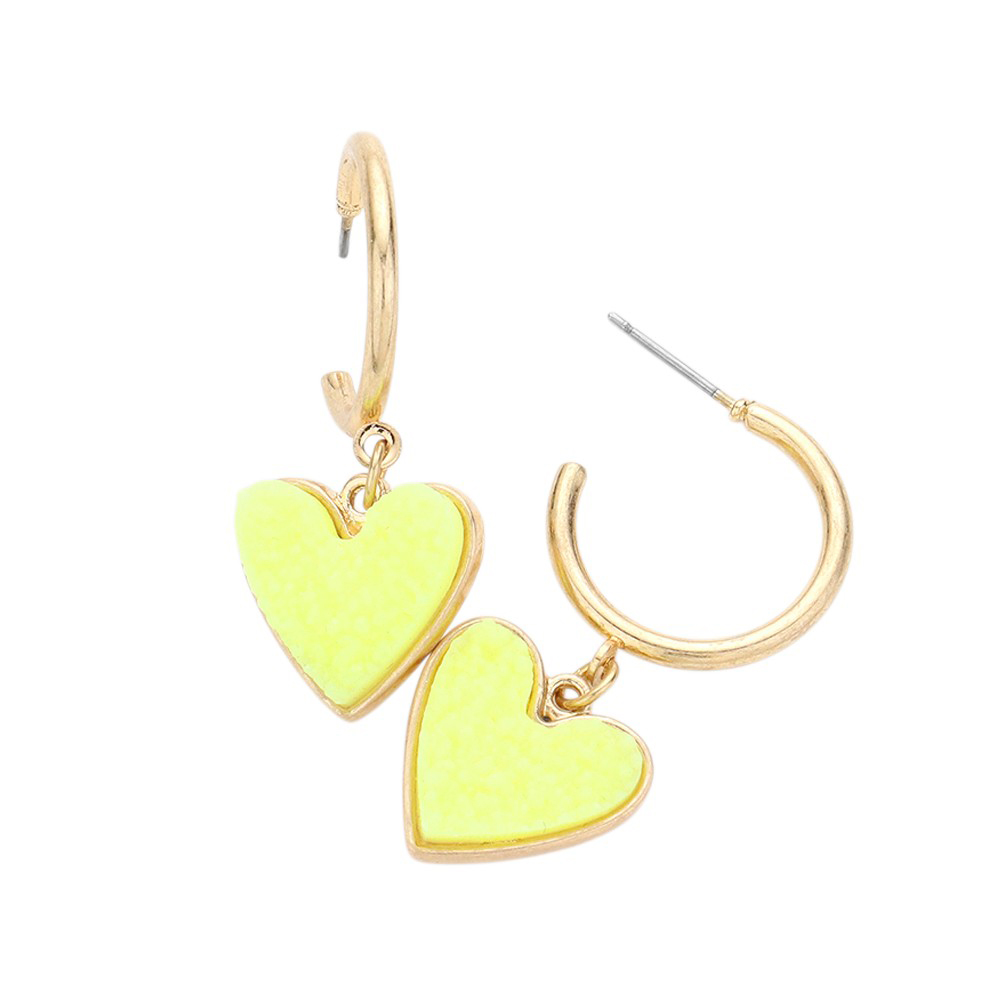 Metal Half Hoop Druzy Heart Dangle Earrings
