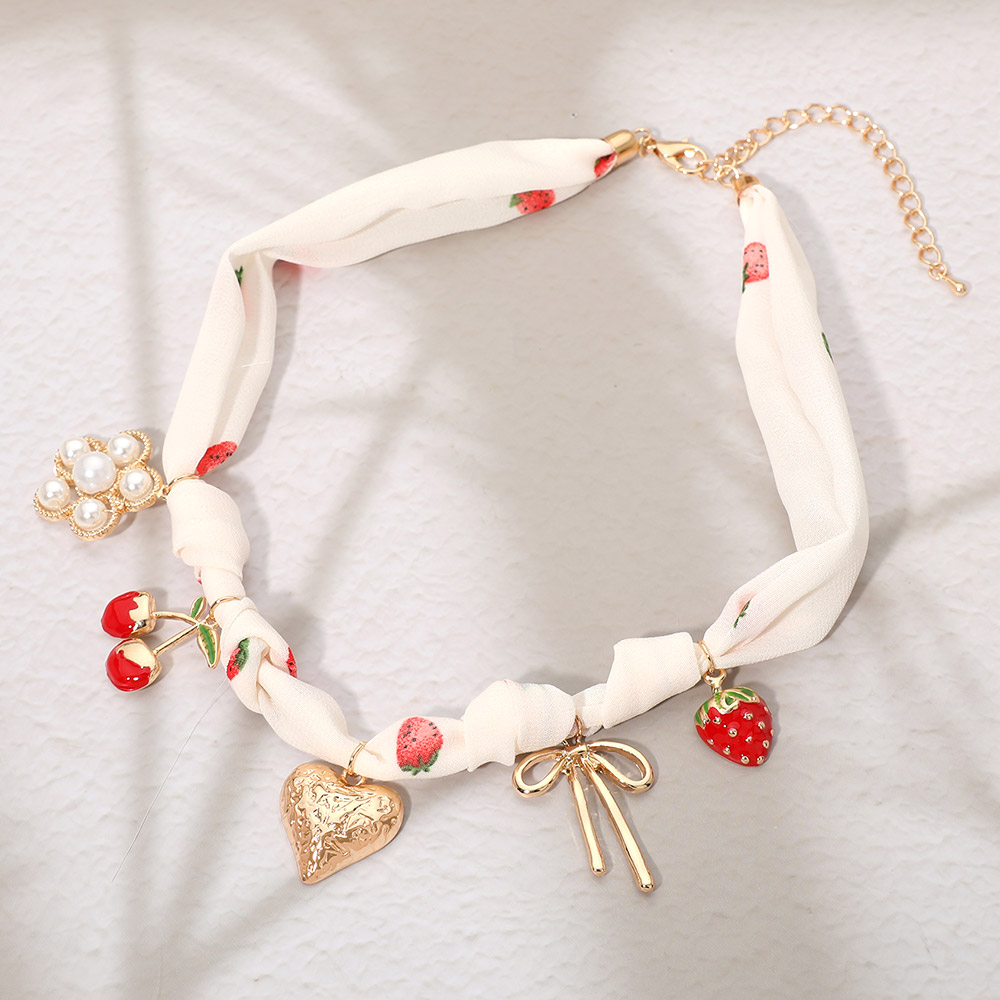 Details • Necklace Size : 16.5" + 3" L • Decor Size : 1.5" L • Scarf style necklace designed with soft drape detailing and multiple charm accents for a playful, feminine look. Features decorative pendants that add movement and visual interest, making it ideal for boutique styling, seasonal collections, and layered outfit pairings. • Lead and Nickel Compliant