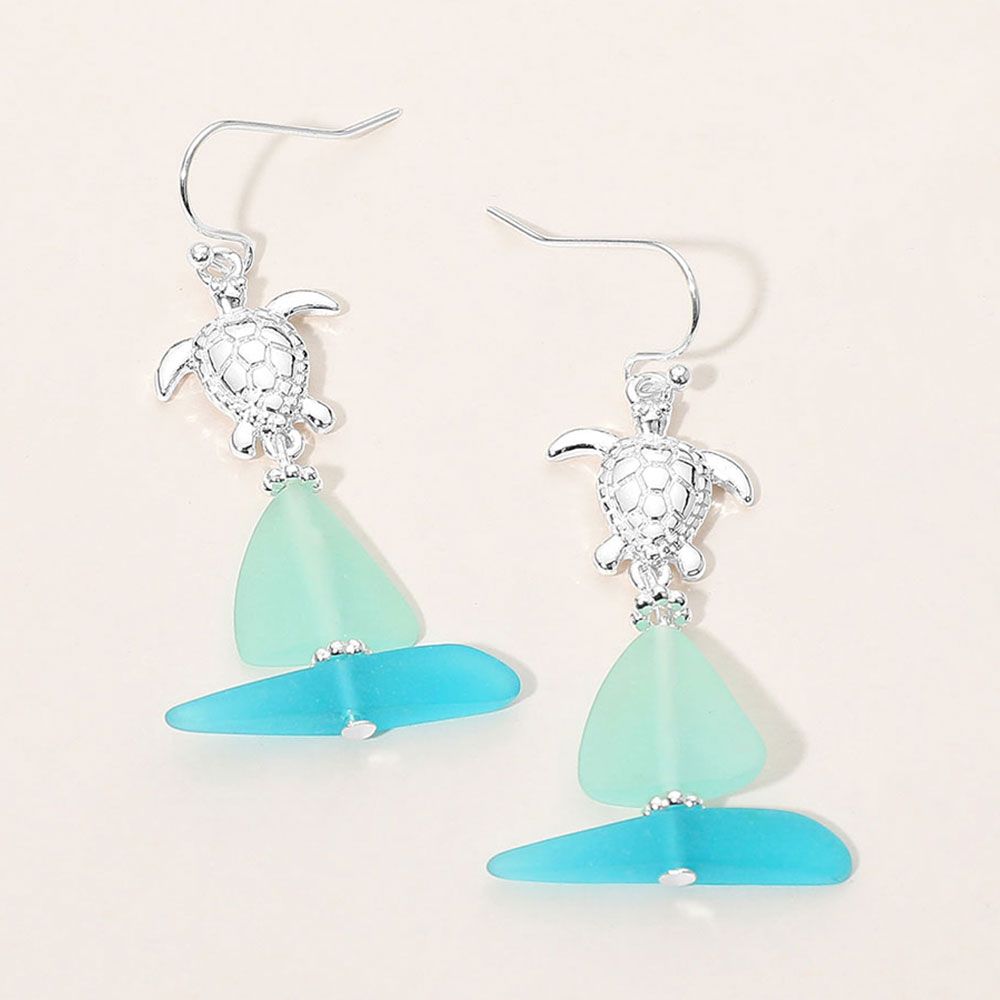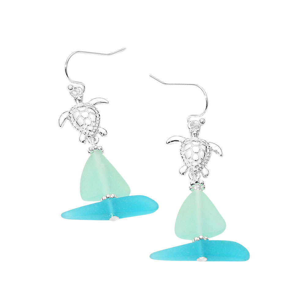 Details • Size : 0.9" X 1.8" • Fish Hook Back • Sea turtle sail dangle earrings featuring a charming ocean inspired design with layered geometric drops that create playful movement. A whimsical novelty style ideal for beach boutiques, resort shops, coastal gift stores, and summer themed collections, appealing to customers who love sea life and vacation ready accessories. • Lead and Nickel Compliant