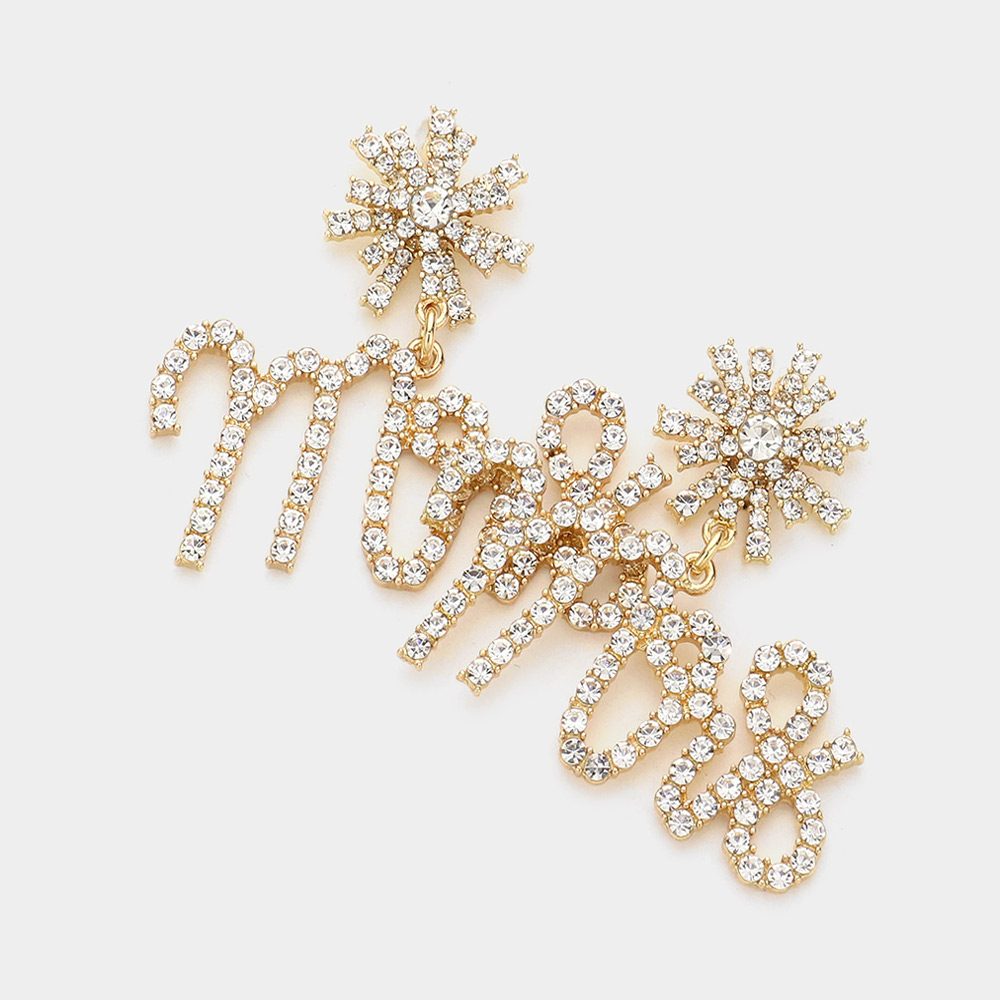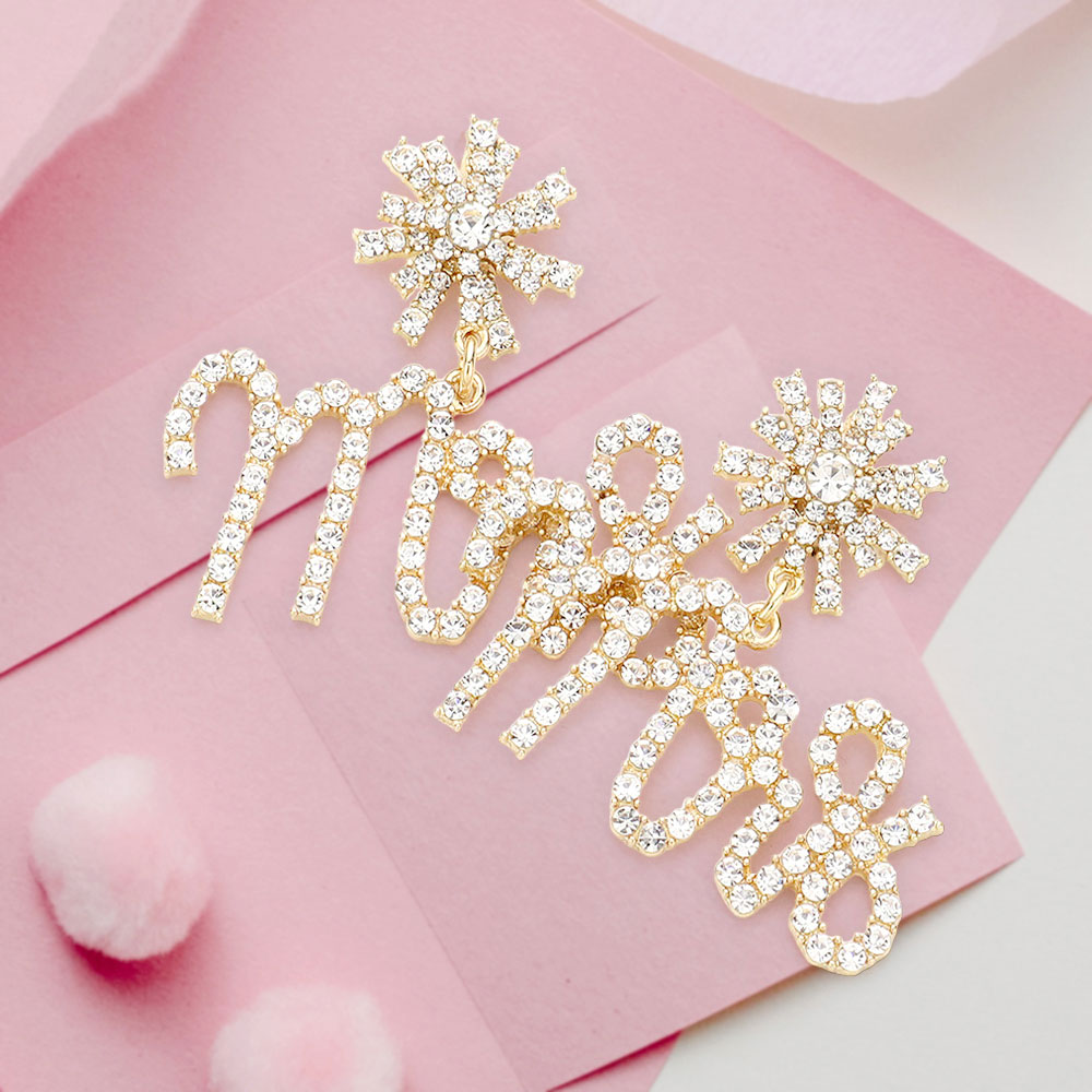 Mrs Rhinestone Embellished Message Dangle Earrings