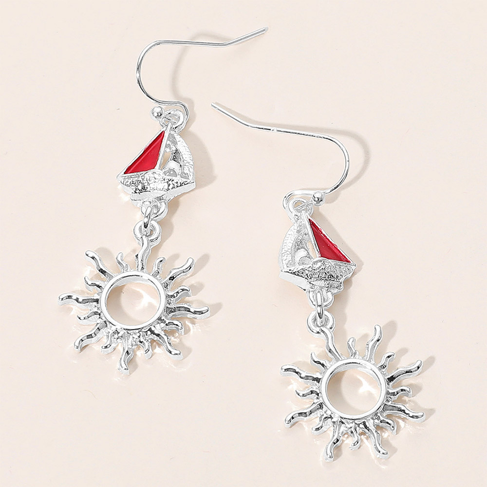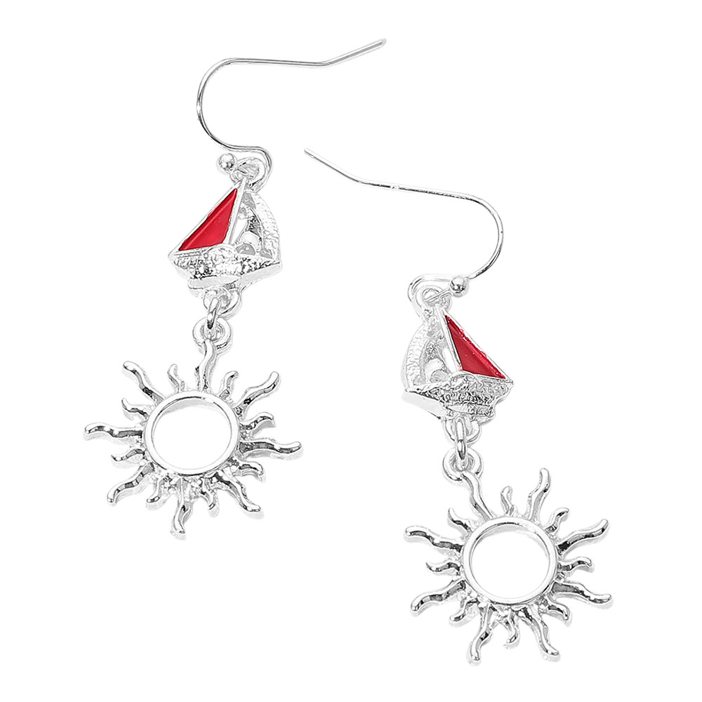 Nautical Sailboat Sun Link Drop Dangle Earrings