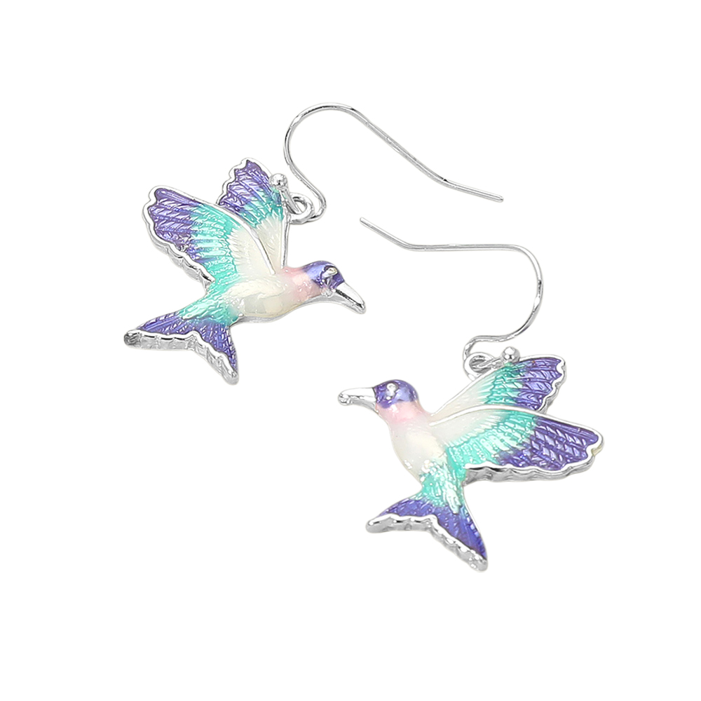 Details • Size : 0.9" X 1.3" • Fish Hook Back • Graceful hummingbird drop earrings crafted with fine wing detailing that captures the beauty of flight. Lightweight and stylish, these earrings add a touch of elegance and charm, making them perfect for everyday wear or special occasions. • Lead and Nickel Compliant