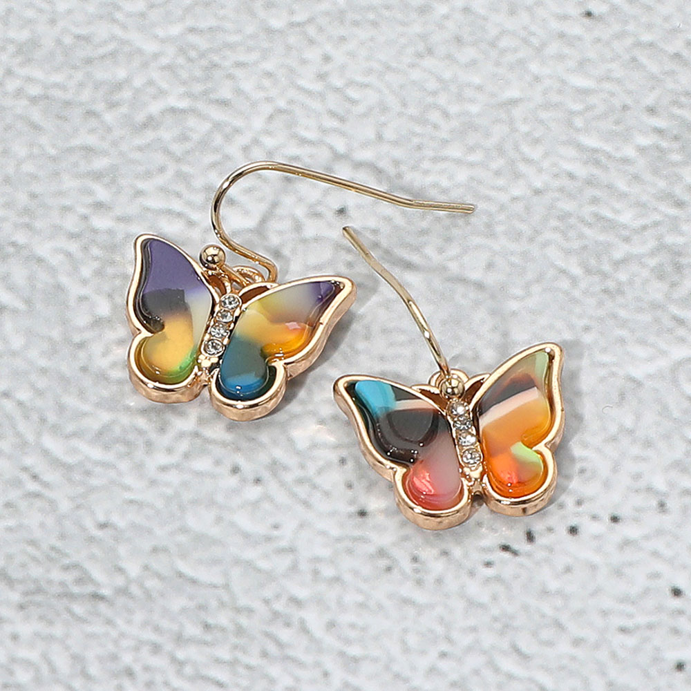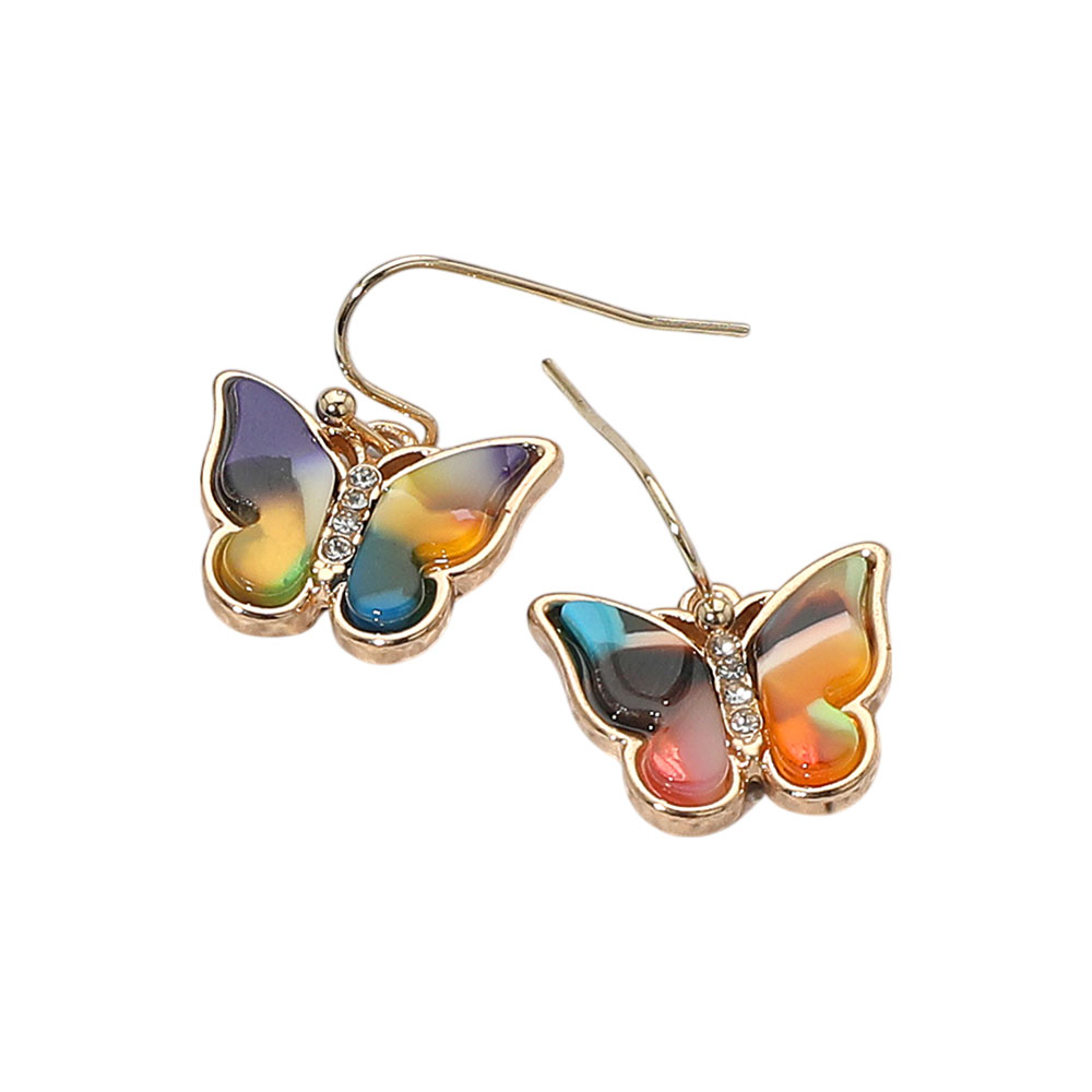 Details • Size : 0.75" X 0.8" • Fish Hook Back • Graceful butterfly-shaped drop earrings with shimmering detail and secure hook design. Lightweight and stylish, perfect for casual wear or adding charm to evening looks. Ideal gift for all ages. • Lead and Nickel Compliant