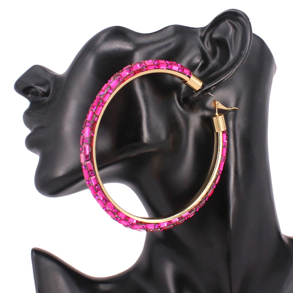 Oversized Baguette Rhinestone Embellished Hoop Earrings Oversized Baguette Rhinestone Embellished Hoop Earrings