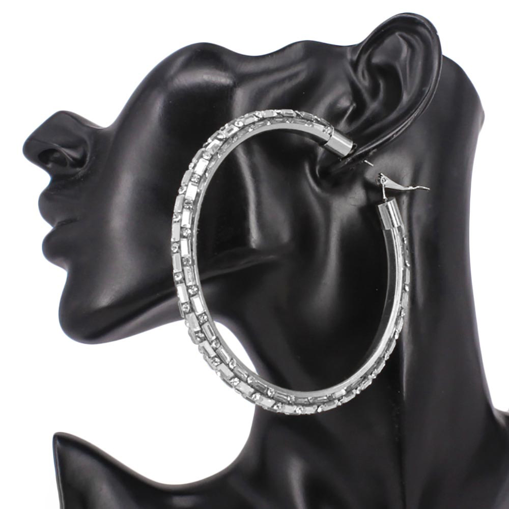 Oversized Baguette Rhinestone Embellished Hoop Earrings Oversized Baguette Rhinestone Embellished Hoop Earrings