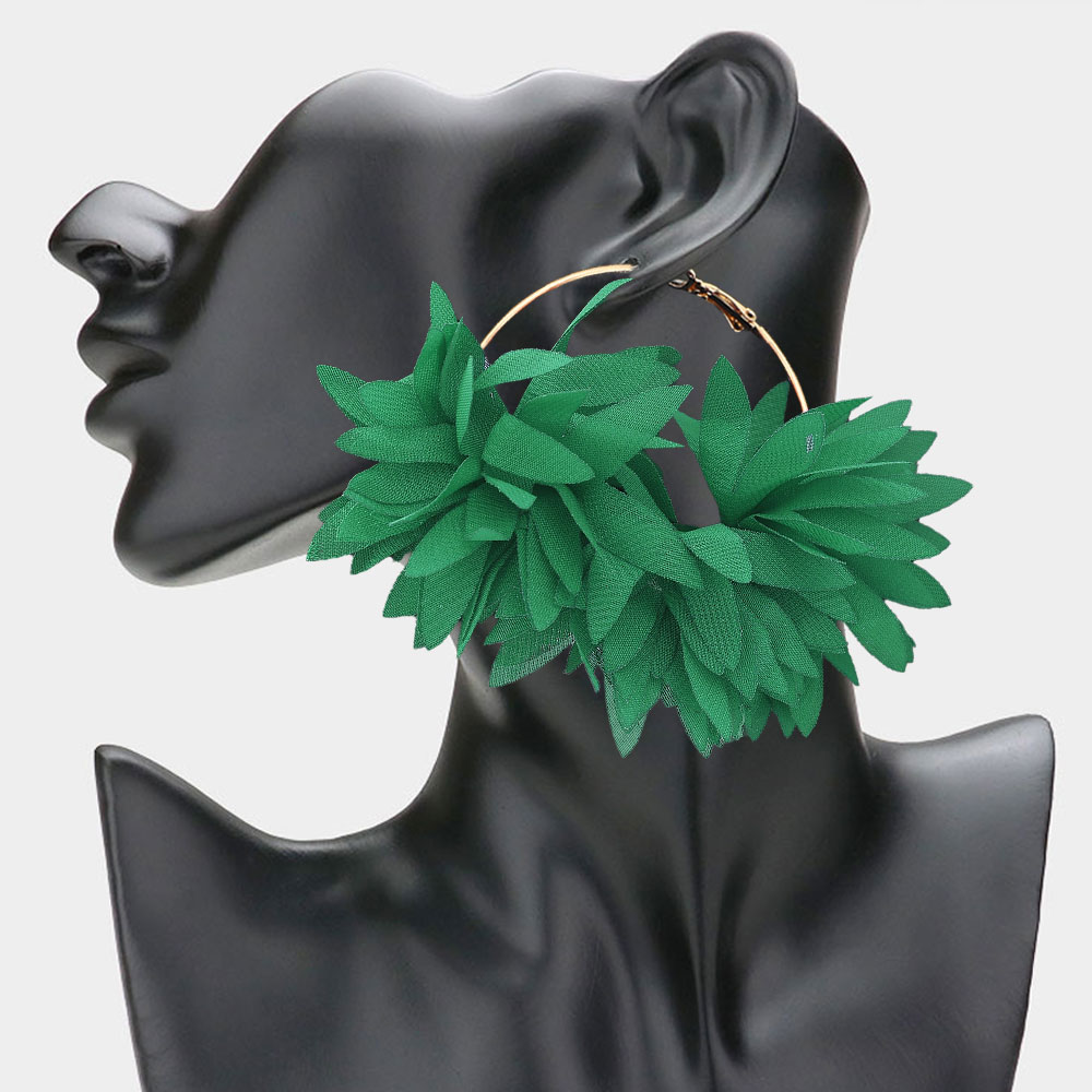 Oversized Fabric Floral Petal Statement Hoop Earrings Oversized Fabric Floral Petal Statement Hoop Earrings