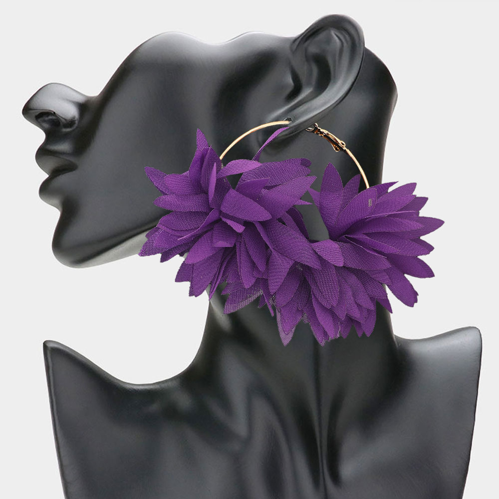 Oversized Fabric Floral Petal Statement Hoop Earrings