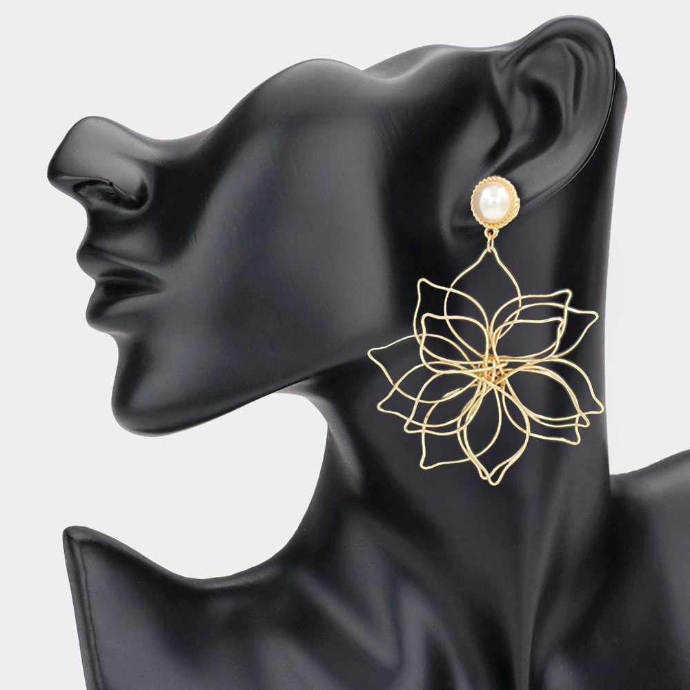 Details • Size : 2.4" X 3" • Post Back • Bold open-petal drop earrings that showcase an airy, sculptural design for a standout look. Their dimensional silhouette adds artistic elegance to any outfit, creating a striking accessory that enhances both casual and dressy styles with effortless sophistication. • Lead and Nickel Compliant