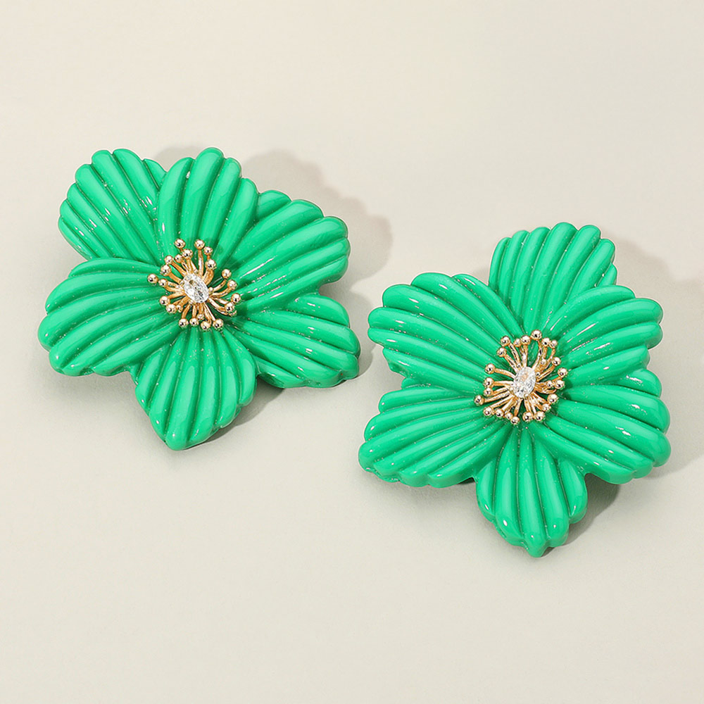 Details • Size : 2.5" X 2.5" • Post Back • Discover these statement floral earrings featuring a bold sculpted flower with a sparkling crystal center. Lightweight and stylish, they add a refined, timeless touch to any outfit, perfect for both everyday elegance and special occasions. • Lead and Nickel Compliant