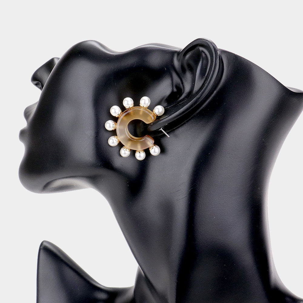 Pearl Detail Celluloid Acetate Half Hoop Earrings