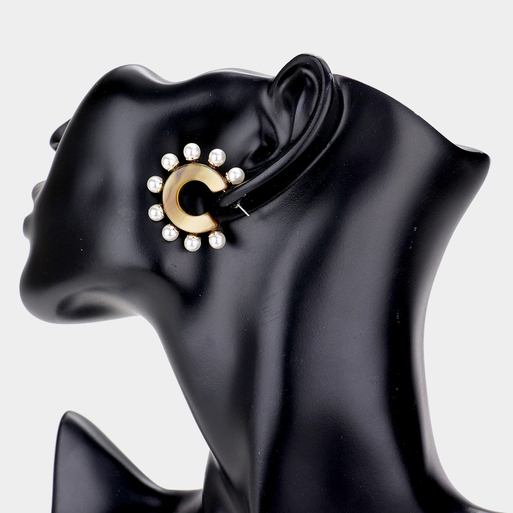 Pearl Detail Celluloid Acetate Half Hoop Earrings