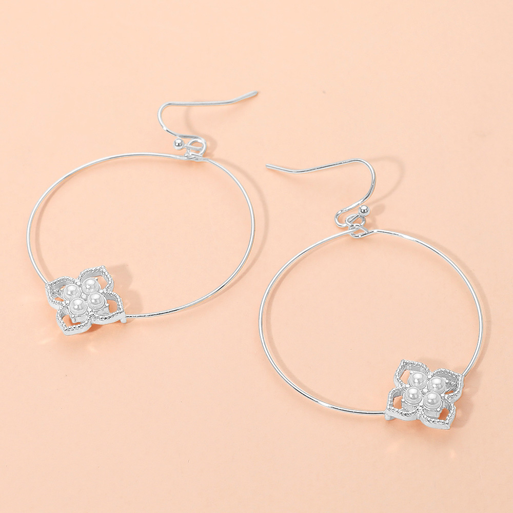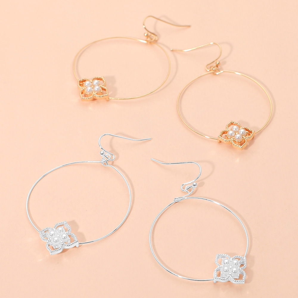 Details • Size : 1.5" X 2.25" • Fish Hook Back • Stylish hoop earrings featuring a refined floral design accented with petite beads. These lightweight earrings offer a chic and versatile look, perfect for elevating both casual and dressy outfits. A timeless accessory that adds subtle sophistication to any jewelry collection. • Lead and Nickel Compliant