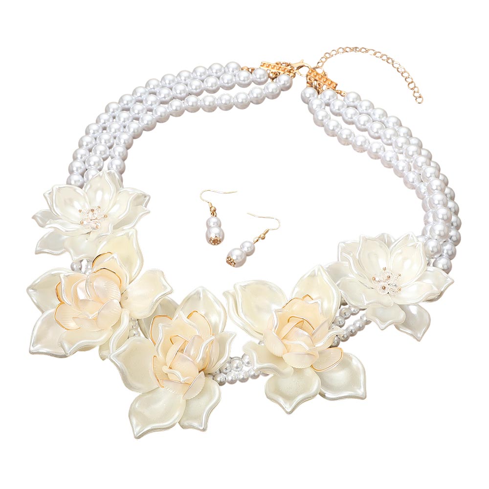 • An elegant statement necklace set with layered floral accents and coordinating earrings, featuring an adjustable fit for comfortable wear. Perfect for weddings, parties, formal events, and special occasions, adding graceful charm and standout style to any outfit.