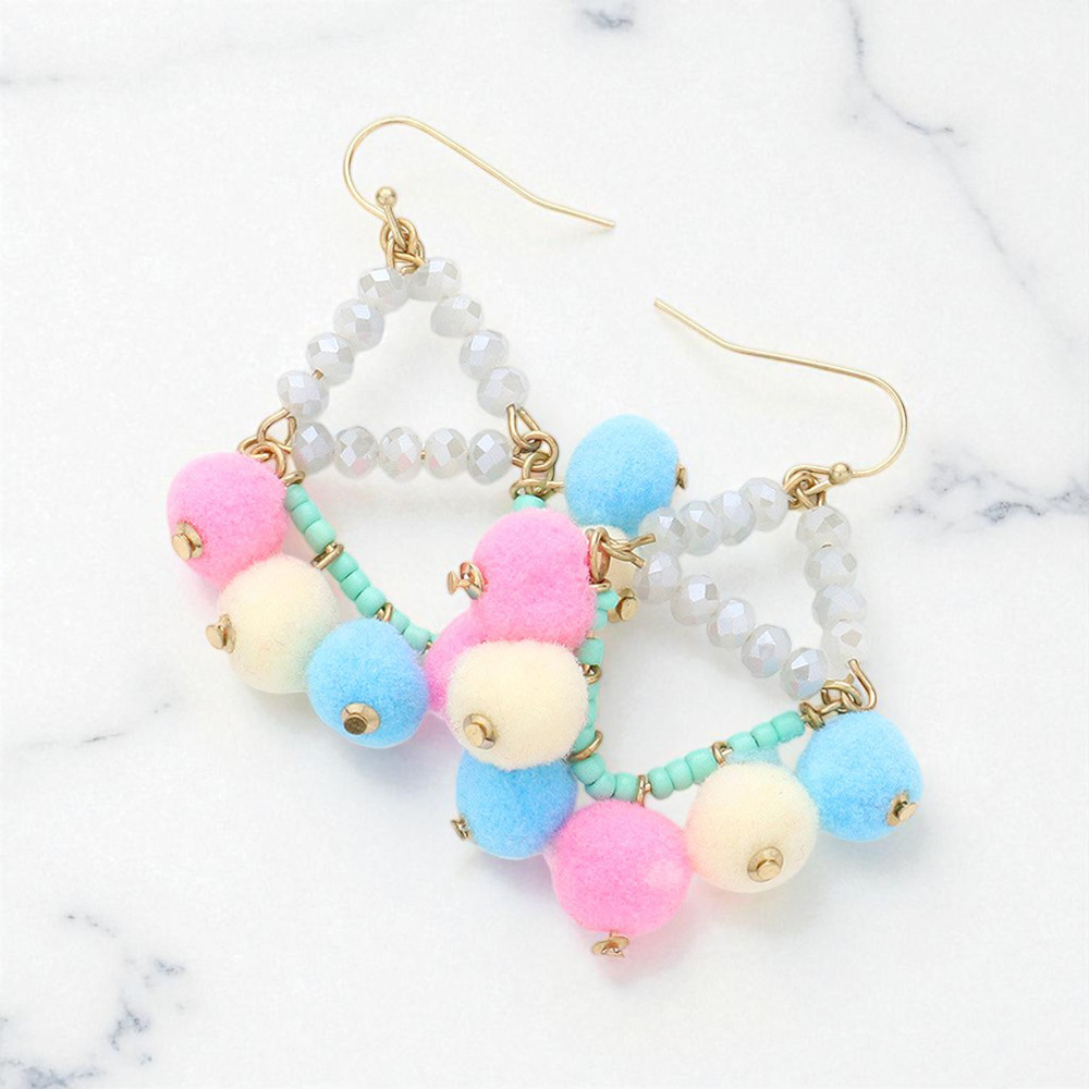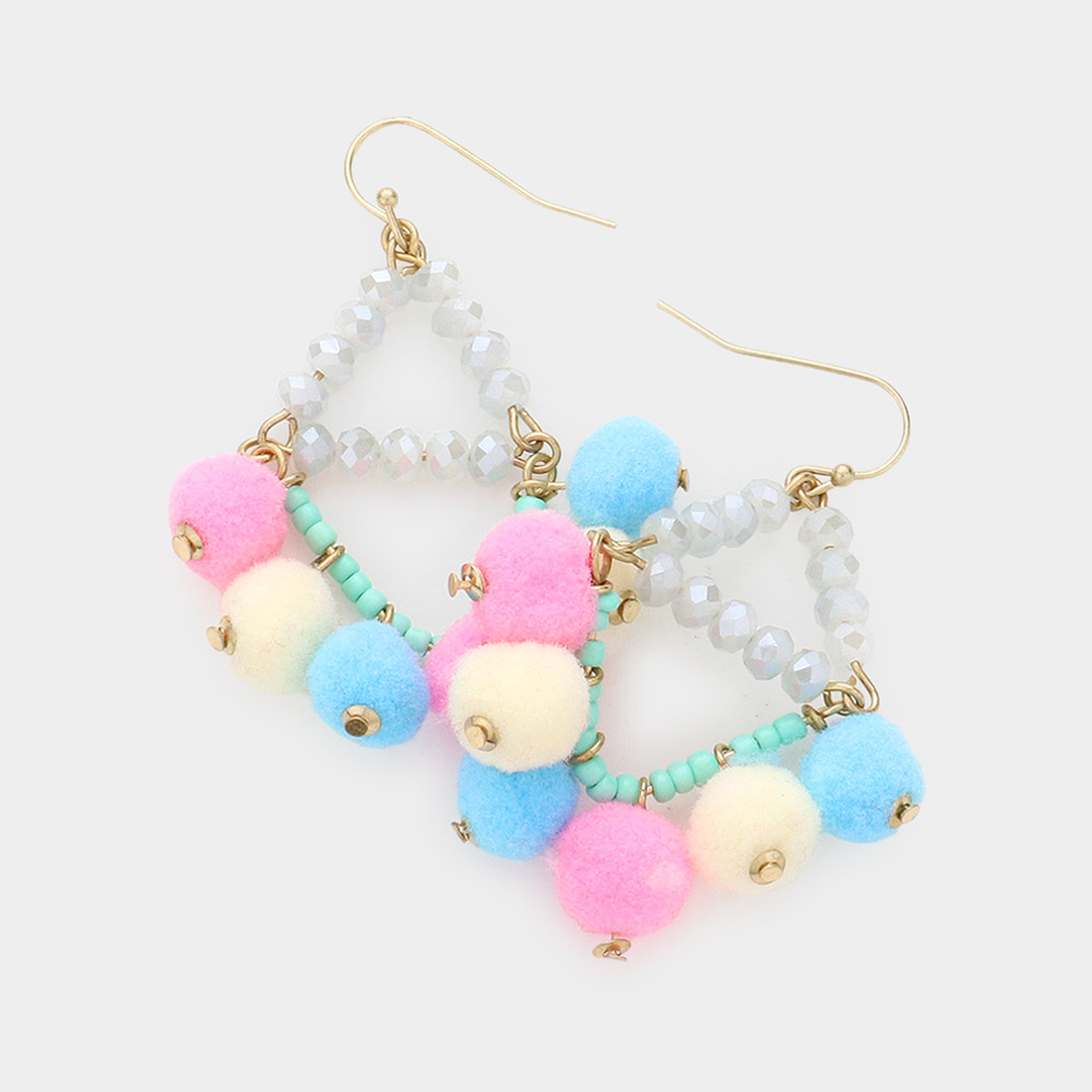Oversized Mardi Gras Tinsel Pom Pom Dangle Earrings