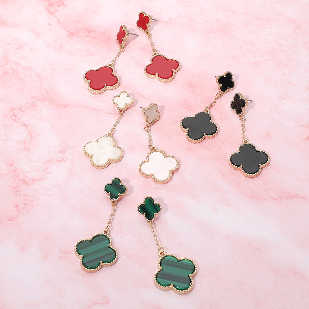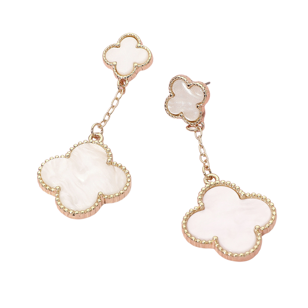 • Stylish chain drop earrings featuring layered quatrefoil charms for a soft, elegant look with gentle movement. This timeless silhouette adds refined detail to everyday outfits and special occasion styling, making it a versatile choice for boutiques, gift assortments, and curated jewelry collections seeking modern yet classic appeal.