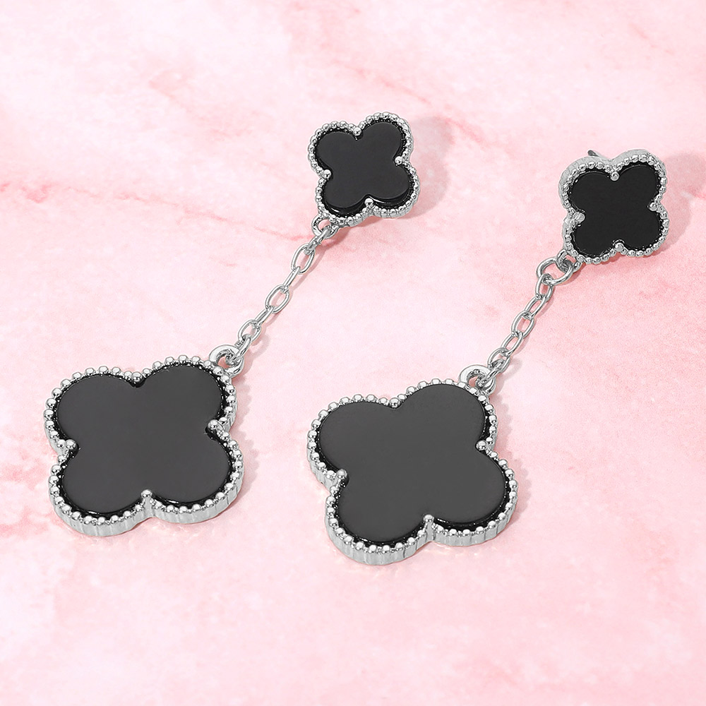 Details • Size : 1" X 2.6" • Post Back • Stylish chain drop earrings featuring layered quatrefoil charms for a soft, elegant look with gentle movement. This timeless silhouette adds refined detail to everyday outfits and special occasion styling, making it a versatile choice for boutiques, gift assortments, and curated jewelry collections seeking modern yet classic appeal. • Lead and Nickel Compliant