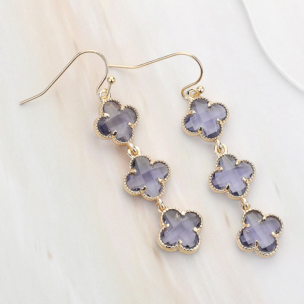 Quatrefoil Stone Cluster Dropdown Dangle Earrings