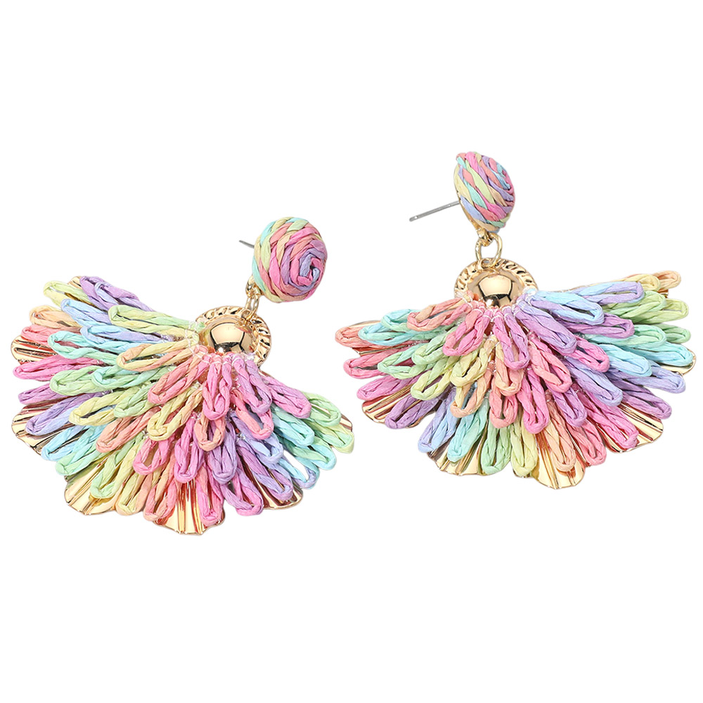 Raffia Fan Drop Dangle Earrings