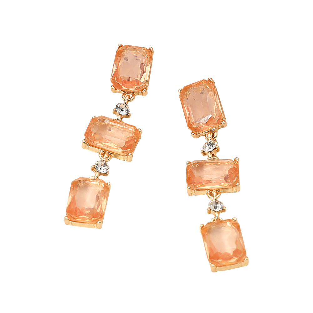 Rectangle Glass Stone Link Dropdown Earrings
