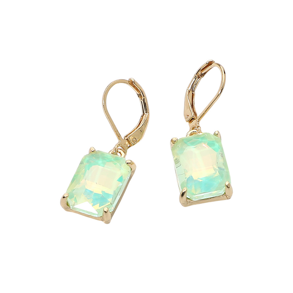 Rectangular Glass Stone Drop Dangle Earrings