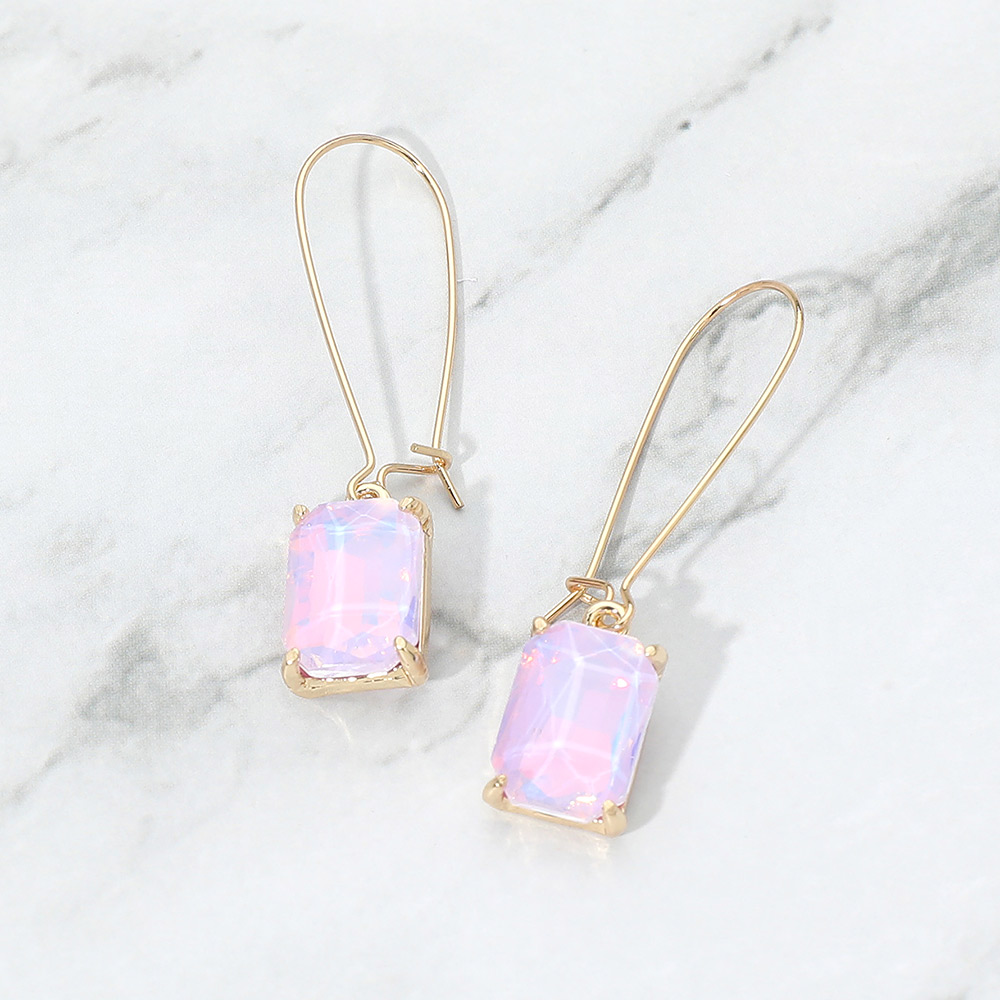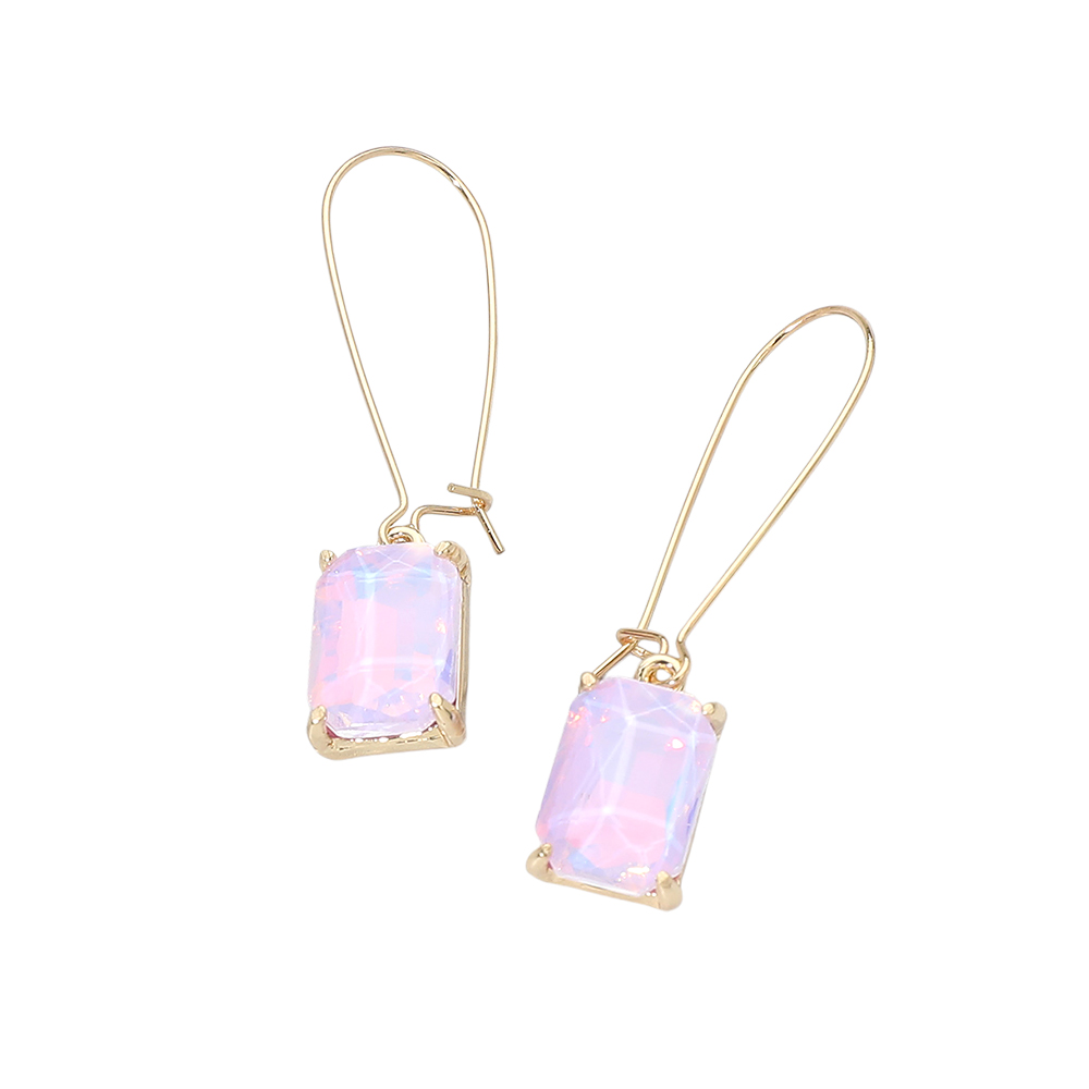 • Elegant drop earrings featuring a faceted rectangular stone suspended from a sleek hook silhouette. Designed to add refined sparkle and movement, this versatile style transitions effortlessly from daytime looks to evening wear, making it a strong addition to boutique jewelry selections, gift assortments, and trend-forward accessory collections.