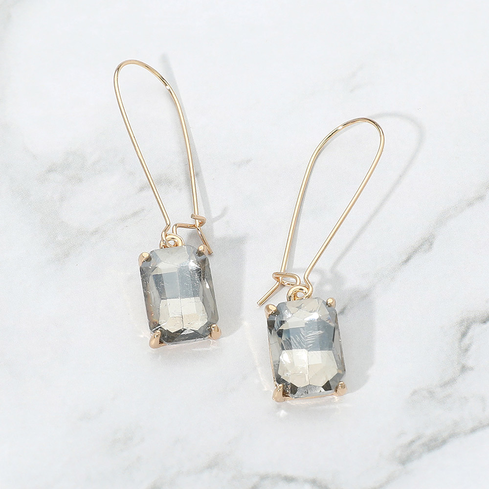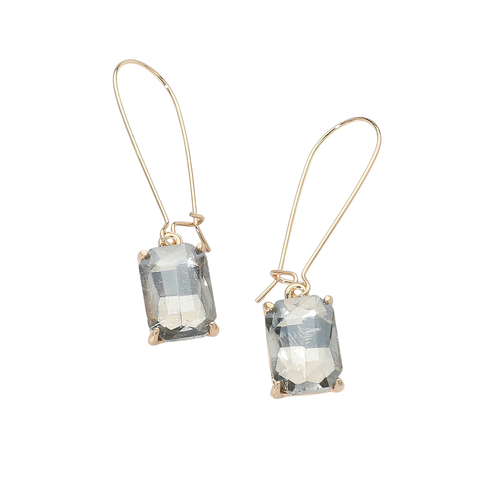 • Elegant drop earrings featuring a faceted rectangular stone suspended from a sleek hook silhouette. Designed to add refined sparkle and movement, this versatile style transitions effortlessly from daytime looks to evening wear, making it a strong addition to boutique jewelry selections, gift assortments, and trend-forward accessory collections.
