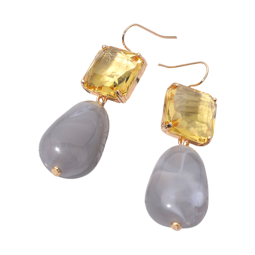 Rectangular Stone Cluster Accent Marbled Resin Pebble Drop Dangle Earrings