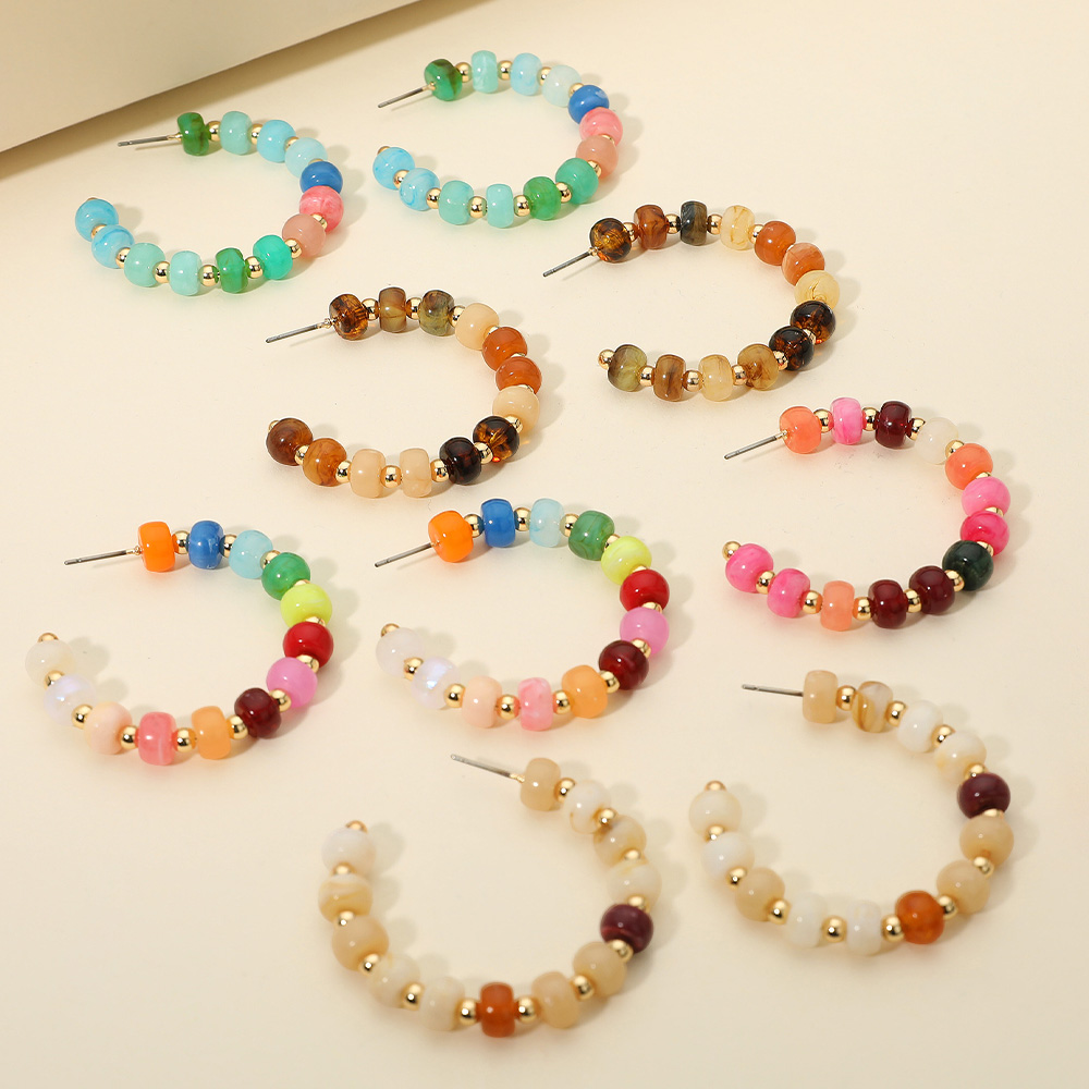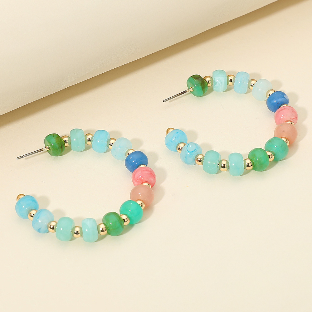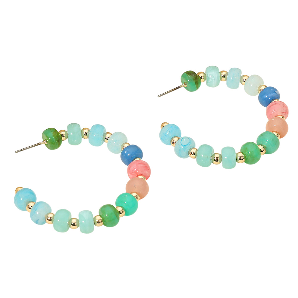 Details • Size : 2" X 2" • Post Back • Stylish beaded hoop earrings featuring glossy resin beads and gold-tone accents. Lightweight and comfortable for daily wear, these trendy hoops add a warm, modern touch to any outfit. Perfect for casual looks or gifting. • Lead and Nickel Compliant