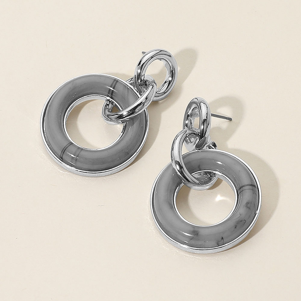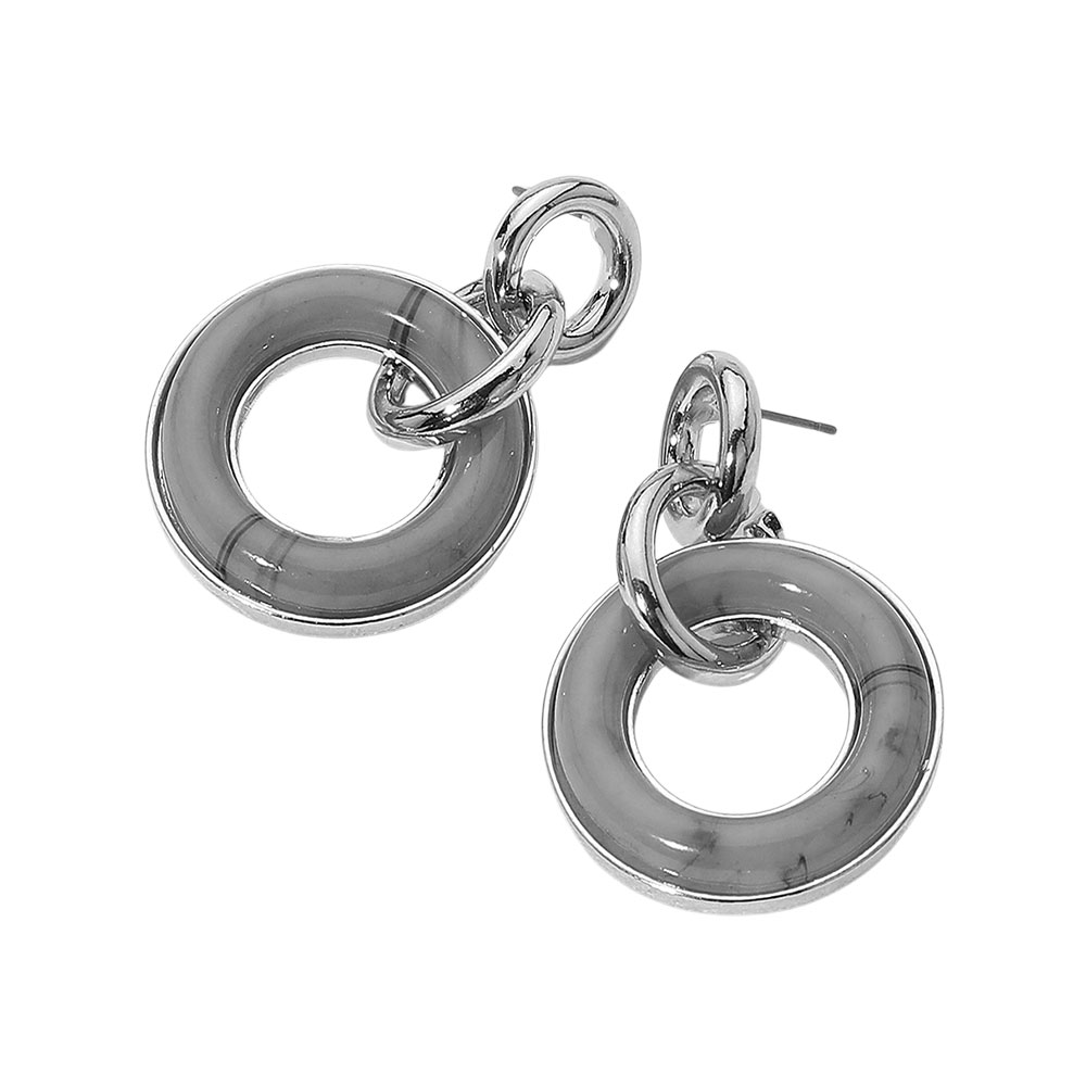 Details • Size : 1.2" X 1.8" • Post Back • Stylish drop earrings featuring interlinked circles with a glossy, polished finish. A modern accessory that adds a touch of sophistication, perfect for pairing with both casual and dressy outfits. • Lead and Nickel Compliant
