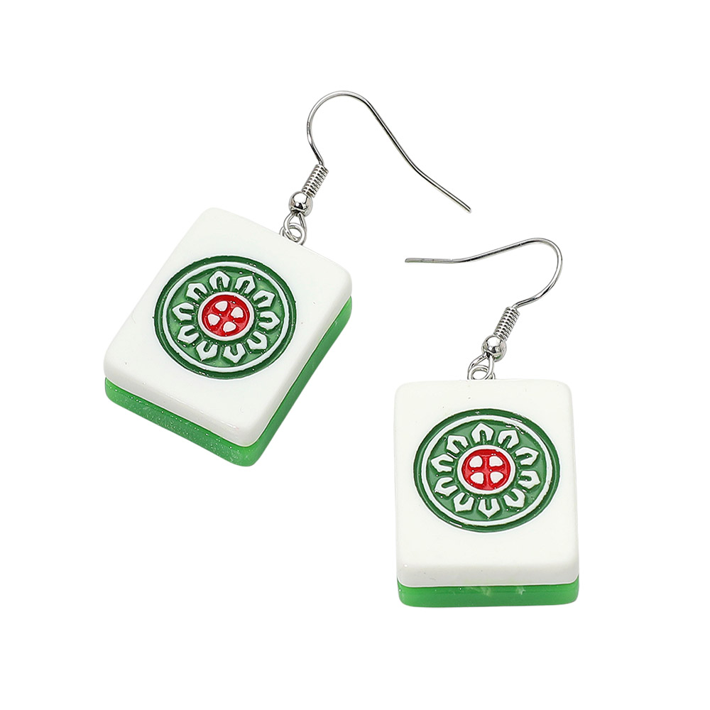 Resin Mahjong Tile Dangle Earrings