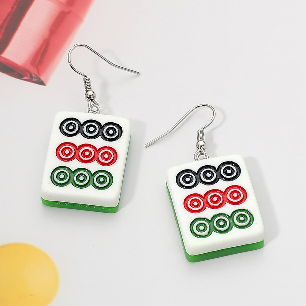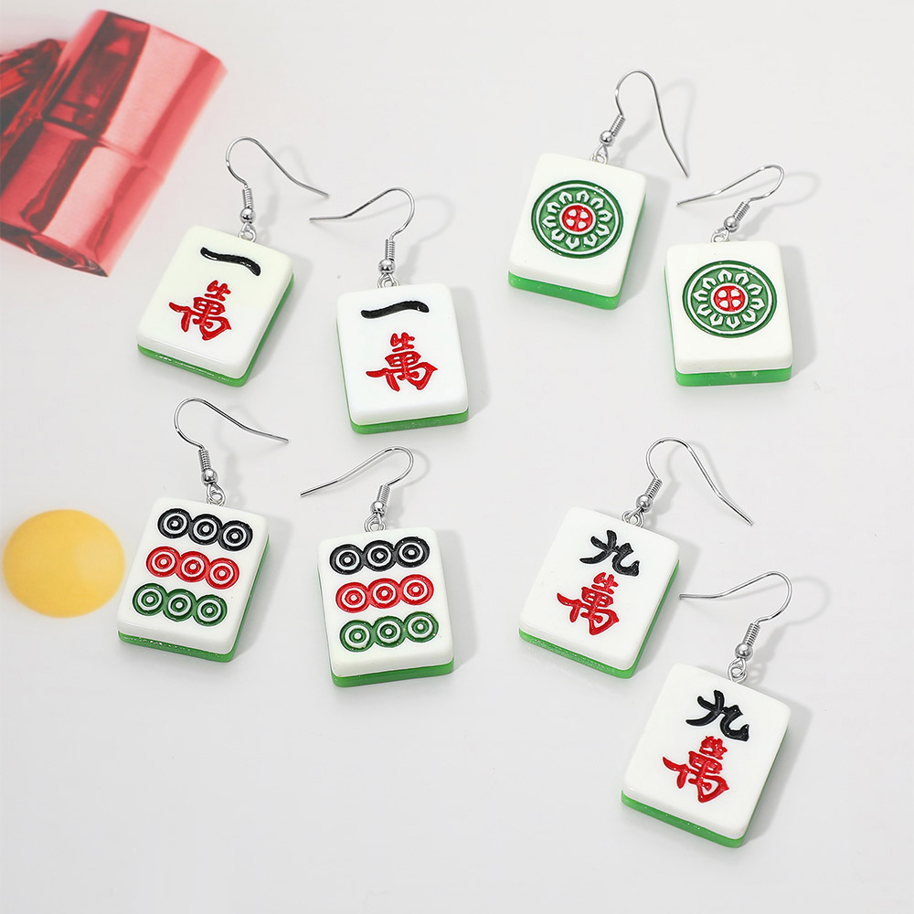 Resin Mahjong Tile Dangle Earrings Resin Mahjong Tile Dangle Earrings Resin Mahjong Tile Dangle Earrings