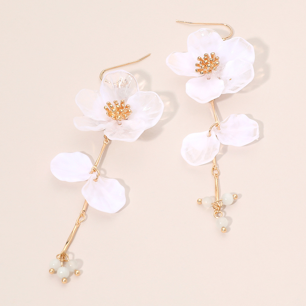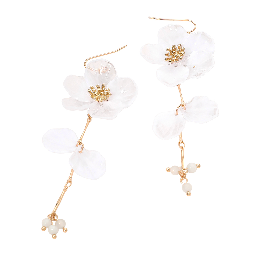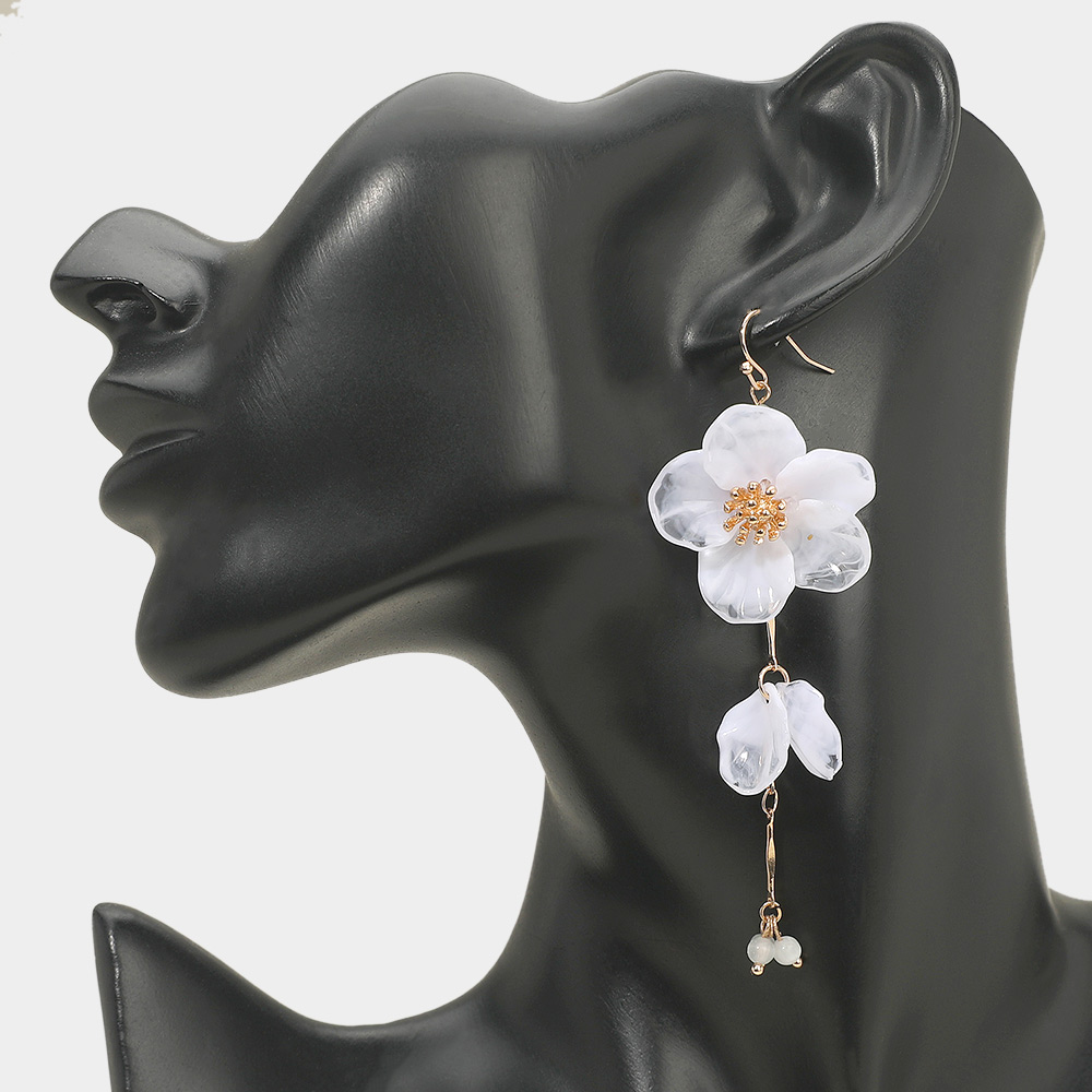 Resin Petal Floral Long Drop Earrings