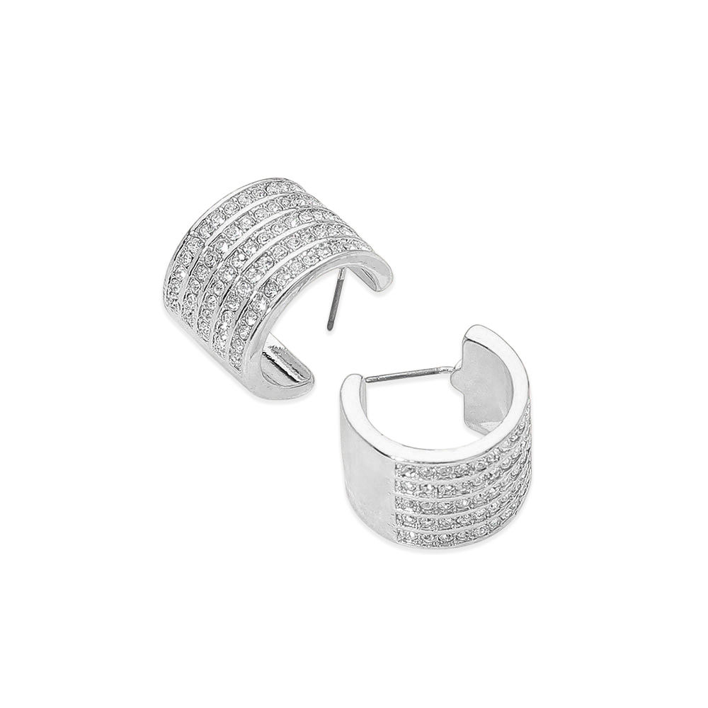 • Modern ear cuff earrings designed with a bold multi-row pavĂ© style that creates a sleek, high-impact look. The curved silhouette adds dimension and shine, making these earrings ideal for evening outfits, special events, and trend-forward accessory collections seeking statement appeal.